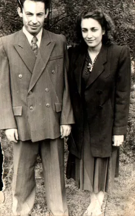 I am having a walk with my wife Riva. We were photographed at my mother's request. She kept this photograph. This photo was taken in Mogilyov-Podolskiy in 1956.