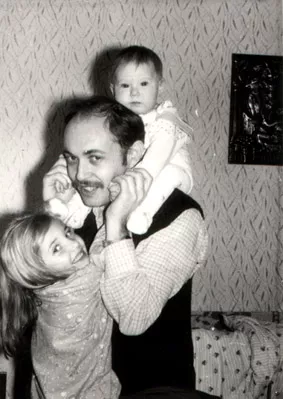 My younger son Mikhail Pizman with his daughters Tatiana (standing) and Nathalia, who turned one year old. This photo was taken in Ataki in 1993.