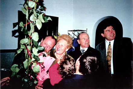 I and my wife Lubov near the entrance to a restaurant on our younger son Yuri's birthday (on the right). Our elder son Gennadi is on my wife's left. This photo was taken in Ternopol in 2003.