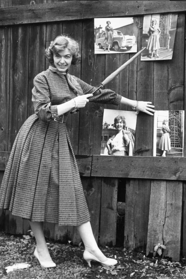 Back then they used to wear petticoats, it was very fashionable, it was the Dior silhouette, the New Look. Wide skirts, which used up lots of cloth, a bodice tight at the waist.