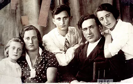 In this photograph from left to right is Braina, my stepsister on my father's side, my stepmother Freida Leikind (nee Grinker), (Girshel after her first husband), my father Shoilik Leikind and on the right is Samuel Girshel, Freida's son, and I, Asia Matveyuk - first from right. This photo was taken in the middle 1930s in Nikolaev. My father kept this photograph. This is the only photo of my younger sister Braina - my father and Freida's daughter, brutally tormented to death by fascists.