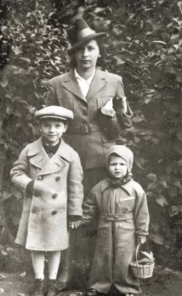 Here we had our picture taken while walking in the park. I and Yakov, the son of my father's brother Hirsh, are in the front to the left. I was close friends with him in my childhood. My mother Miriam Dobrysh is behind us. The picture was taken in Tartu in 1936.