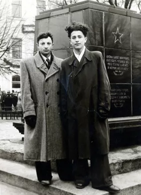 To the right are my brother Avigdor Steinas and son of fathers' brother Feivl Abram Stein. The picture was made in Siauliai by the monument to the Unknown Soldier in the1950s.