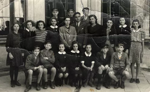 These are my classmates from the Jewish school in Ruse. In the middle on the left is the geography teacher Kamilarova (mother of the famous Bulgarian violine player, Emil Kamilarov), next to her is the headmaster of the school Ben Avram and the literature teacher (I can’t remember her name). I am the first on the left on the lowest row. The picture was taken in Ruse on 27th October 1942.