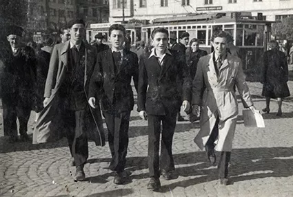 From left to right in this picture are: I, Ziko Lorer, David Levi and Leon Daniel. The picture was taken in Sofia, in 1946-47.