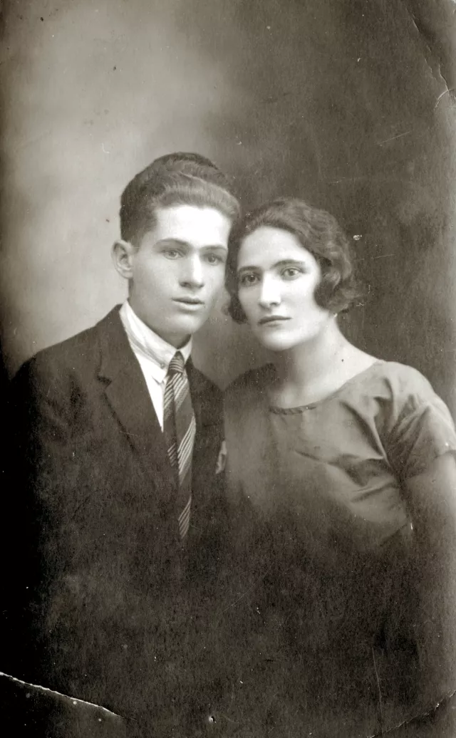 This is my father's younger brother, Baruh Konorti, and his wife, Regina. Baruh was born in 1905 in Sofia. He used to work as a barber in the town of Dupnitza. He went to live in Palestine in 1926. He had a lot of difficulties there and he wrote many letters to my father asking for help. He left Palestine and came back to Bulgaria, and then emigrated back to Israel in 1949. He got married there and settled in Akko. Most of my family moved to Israel.