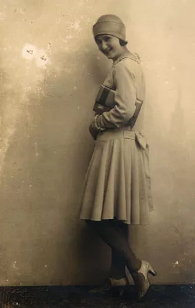 I had this photo taken in Marosvasarhely, in the Weintraub studio. The dress was made here too, it was a very elegant, very beautiful blue, rather light colored dress. My legs were slender too, I have to tell this, whithout any conceit. And a little collar, with lace all around. And look at my shoes! I brought most of my shoes from Pest. My uncle demanded me to spend every year at least one month at his house, so why shouldn’t I have bought? I bought there. My husband said: ‘This is such a nice dress, have a photo taken and send it to your uncle!’ Almost all my photos were taken like this. No decorations on every photo. My photos were all simple.