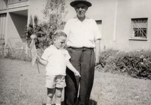 This is my father Beniamin Kohen with his grandson Reni Kohen (I cannot remember his full name), son of my brother Sinto Kohen. The boy was 3 years old at that time. The photo was taken in 1959 in Tel Aviv.
