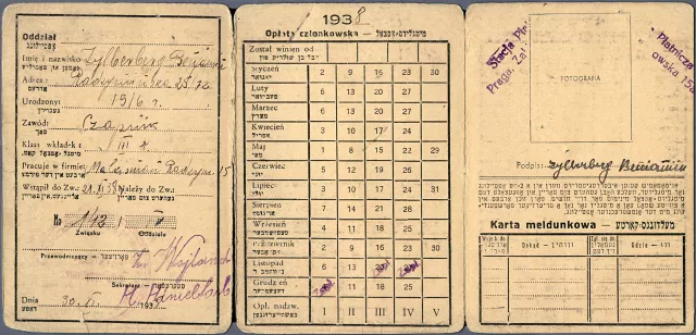 Beniamin Zylberg’s membership card of the Tailors' and Furriers' Trade Union
