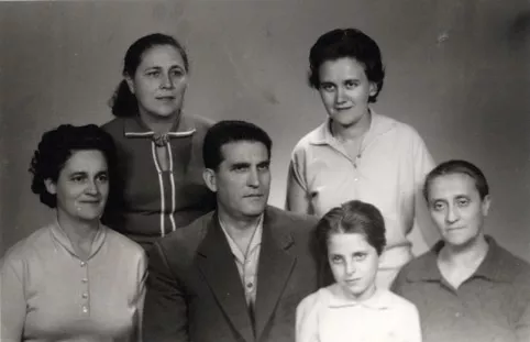 This is the Beniesh family. In the second row, from right to left are: my mother, Elvira Lidgi, I (standing, in a white blouse), Mois Beniesh's wife - Rebeka, next to her on the left is Sarah - mum's sister from the second wife of grandpa - Dzhamila, next to her on the right is Mois Beniesh - her brother and next to him is his daughter Maya Beniesh. The photo was taken in a studio. There is no stamp on the back, only an inscription: 7th June 1962. The reason for taking the photo was aunt Sarah's first visit to Bulgaria after having moved to Israel in 1941.
