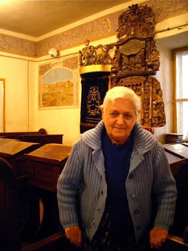 This is I, Berta Finkel, at the synagogue in Botosani, in the small room for women, after the Rosh Hashanah religious service, in 2007.