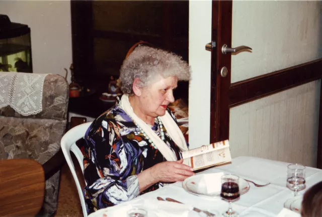This is I, Berta Finkel, in 1996, when I traveled to Israel. I was at Srulica Hermon's place - the brother of my brother-in-law, Falic Hermon - on Passover, on seder, I dined there, and they took my photograph. I don't remember the name of the city where Srulica lives.