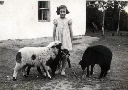 Here I am in front of Grand Mama’s (Granny Rika) house in the Dolna Mahala (Lower Neighborhood) in 1945 or 1946. I recall that year we had taken for the first and last time some sheep to look after and I had called the little lamb Belcho [Whitey]. But later on it was slain, of course, but I couldn’t taste even a single piece from its meat. I remember that they knitted a pair of trousers for me from its wool. There is neither a stamp of a photo studio, nor any other inscription on the back of the photo.