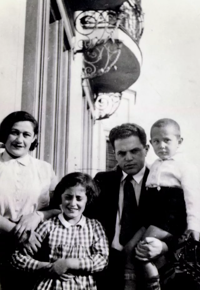 Here you can see my mother Bertha Jafet, my father’s sister Mania’s daughter Mary Dinerman, my uncle Alexandr Jafet and I in his arms. This photo was taken during our trip to Berlin in 1936, on the Dinerman's balcony.