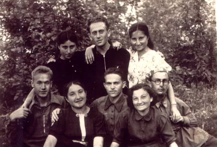This is me with my group mates, students of the Agricultural College. We were photographed at our testing site. This photo was taken in Kharkov in September 1946.
