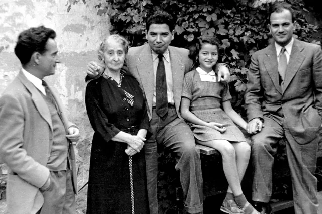 On this photo you can see my daughter (the girl sitting), my husband (in the middle), his aunt (the elderly lady next to him), his brother Oskar (on the left) and his cousin Leon Davico (on the right).