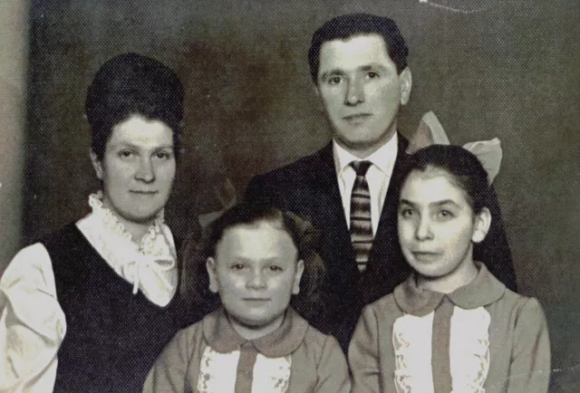 This is my brother's family photograph. Standing on the left is my brother's wife Ada Greenfeld, on the right is my brother Boris Greenfeld. Their daughters are in the foreground, Tatiana on the left and Tsilia on the right. This photo was taken in Riga in 1970, shortly before my brother and his family moved to Israel.