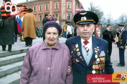 In 2005 our country celebrated the 60th anniversary of Victory in the Great Patriotic War. Veterans took part in celebrating of the Great Victory. Together with my wife we were invited to watch a concert at the Octyabrsky Concert Hall. At the entrance we had our picture taken.