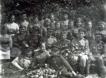 Attendants in the hospital washed bandages, but they took the rest of laundry to special laundry units. Many patients had fleas. I managed to escape this by changing my underwear every day. This was rough cheap cotton underwear and when you moved your shoulders it felt like a bast whisp brush. We often washed in the sanitary washroom. There were huge 500 L tubs connected to a boiler. Patients and hospital employees had meals in the dining room. We had good food. There was always a nice piece of meat in borsch or soup. This was our base food. We received uniforms in the storeroom. We chose a bigger size overcoat to have it altered by a tailor when we lodged in a town. Some women even managed to have puffed sleeves made in their coats. There was a shoemaker among our patients. He could make nice boots from a pair of hospital slippers and ground sheet. They were light and nice, although they were khaki color that was against the rules. We applied black shoe polish and managed to polish them to glitter and they looked as the best boxcalf boots.