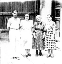 Here you can see me with my wife Dora Slobodianskaya, my mother Pesia Slobodianskaya and my sister Sheiva Slobodianskaya in the courtyard of our building in Chernovtsy. The photo was taken in 1953.