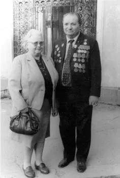 Here you can see me and my wife Dora Slobodianskaya at our golden wedding in Chernovtsy in 2002. On my suit you can see the orders and medals awarded to me for my combat deeds and labor achievements, including the Order of Great Patriotic War, Order of Glory, medal for defense of Stalingrad, medal for Courage, etc.