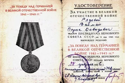 Boris Vayman's certificate (Medal for the Victory over Germany)