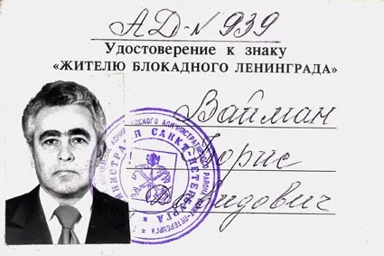 Boris Vayman's certificate (Sign of the Besieged Leningrad Citizen)