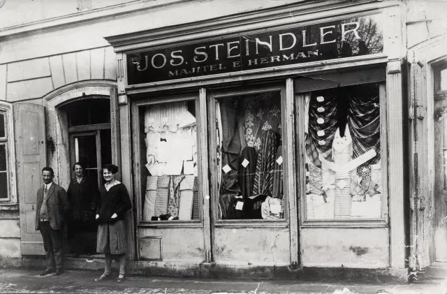 This is picture of my grandmom´s brother Emil. Beside him is standing his sister Matylda and his wife Petronila. The picture was made in front of Emil´s shop.