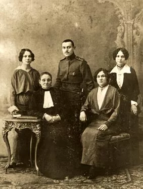 Standing: mother's elder sister Anna, mother's brother, Dmitriy Titov (in the uniform of Alexeyevskiy military school), my mother Capitolina Titova.