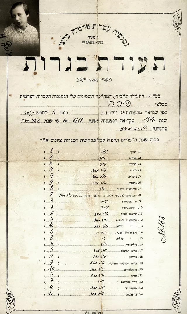 My mother was born in 1910 in Beltsy in Bessarabia, which until 1918 belonged to Russia, and in 1918-1940, to Romania. I know about mother's childhood thanks to her certificate from the grammar school.