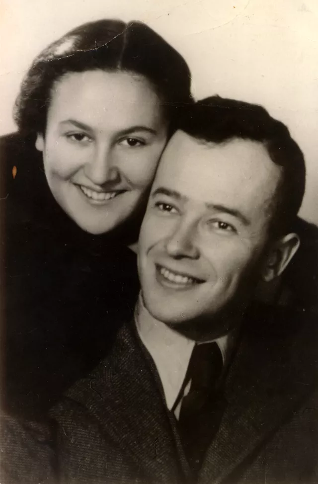 This is me, Chasia Spanerflig, with my first husband Boris Friedman. The photograph was taken in Vilnius in 1939. This is our wedding picture.