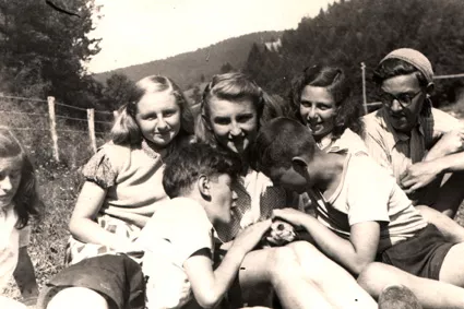 This photograph was taken in Brezova pod Bradlom, in 1943, where our parents had sent us to a Protestant youth camp, so that we'd be protected from the deportations. In the photo, I am the first on the right.