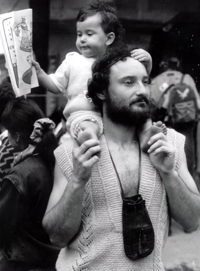 My granddaughter Sonia Kostyuk and my son Pavel Kostyuk photographed on Kiev Day to give this photo to me. Kiev, 1992.