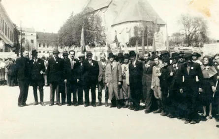 This was a communist processing on the main square of Des, in around 1945, they were big communists. My husband Fulop Grossmann is in the first line, he’s the fifth from right, I don’t know the others.
