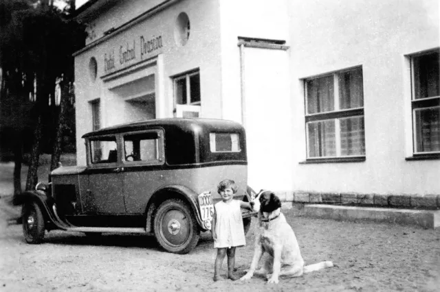 When I was very small, we spent a few holidays in Stare Splavy near Machovo Lake, where we stayed in a hotel. The car does not belong to us same as dog Baryk.