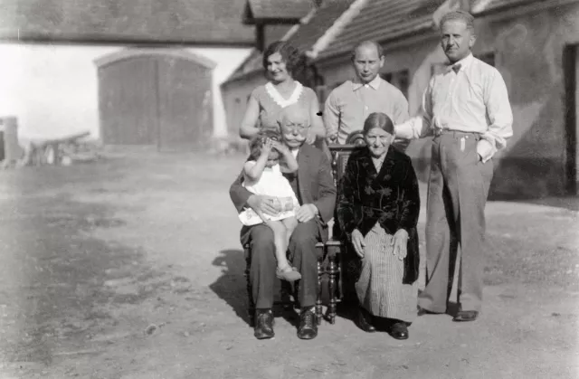 This picture was made in Cimelice where my paternal grandparents lived. I am the small kid sitting on granddad,beside him is grandmom and my parents are standing behind.