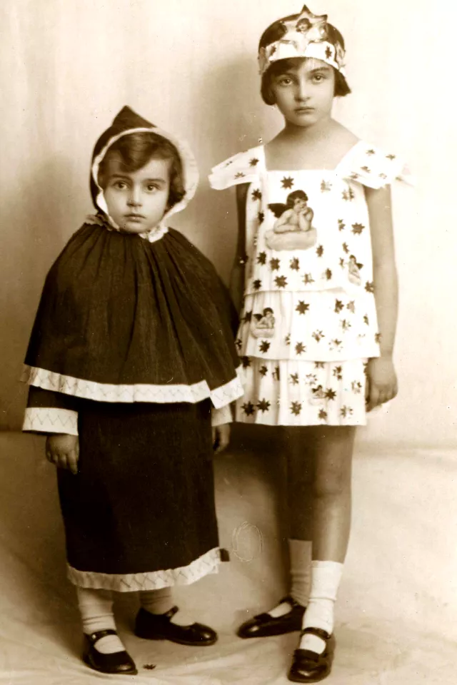 The photograph was taken in 1929 in Bucharest, on the Purim holiday. I, Dan Mizrahy, am on the left, and my sister Mira Cotin [nee Mizrahy] is on the right.
