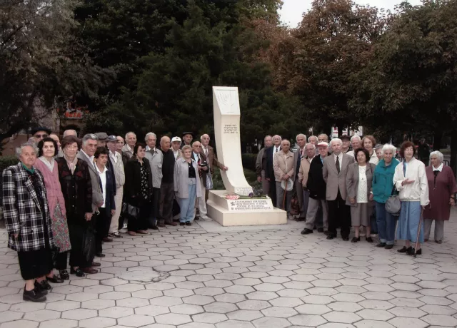 This is a photo of a gathering in Plovdiv in front of a monument on 18th September 2004. We were celebrating the 60th anniversary of the liquidation of Jewish forced labor groups. In the photo I’m the fourth from left on the right side of the monument.