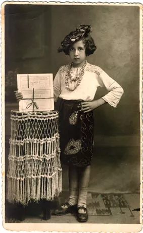 This is a photograph of my wife Devora Finchelstein on the occasion of the festivity at the end of the school year. She received a prize, you can see that she was awarded 1st prize on that occasion and she received a coronet. The photograph was taken in 1937 at the Select photo studio. It was a Jewish photo studio, a great photographer worked there, he enjoyed a good reputation even throughout the country. In any case, he was the best photographer in Iasi. The entire neighborhood knew him as "der stimer fotograf" [Yiddish: the dumb photographer]. Back then, there were only a few studios in Iasi which processed photographs for weddings and other occasions.