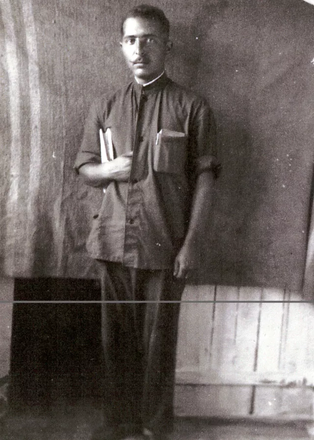 This is me photographed in prison in Lvov in 1953. I had this picture taken to send it to my mother.