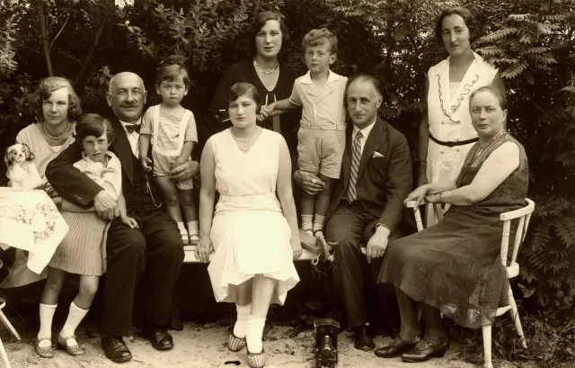 This picture was taken in the photo salon Levinas in Jurbarkas at the beginning of the 1920s. These are my maternal relatives, whom I don’t know. My mother's sister Dina Shabashevich, dressed in white, is sitting in the center. Zhenya Grinberg, Uncle Joseph's wife, in a dark dress is behind her.