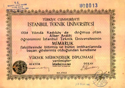 I had the opportunity to form wonderful friendships at ITU. Suleyman Demirel 9and Necmettin Erbakan 10 were both my classmates there. An important feature of the educational program in those years was that our faculty contained both Architecture and Civil Engineering students. Today, both fields are distinct, but back then, we had the opportunity to graduate with two different degrees, as stated on our diplomas.
