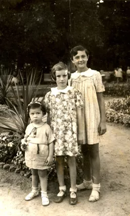 This is me, Dobre Rozenbergene, in the center. My cousins, daughters of Mother's brother Michl Figlyar are standing next to me. They came to Jurbarkas from Kaunas in 1936 - on the right is the elder, Doba Figlyar, her younger sister, Pesya Figlyar, is on the left.