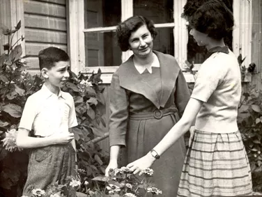 This is me, Dobre Rozenbergene, with my children - daughter Brocha Mere and son Motle - by our house in the late 1950s in the town of Shakiai, where we were living at that time.