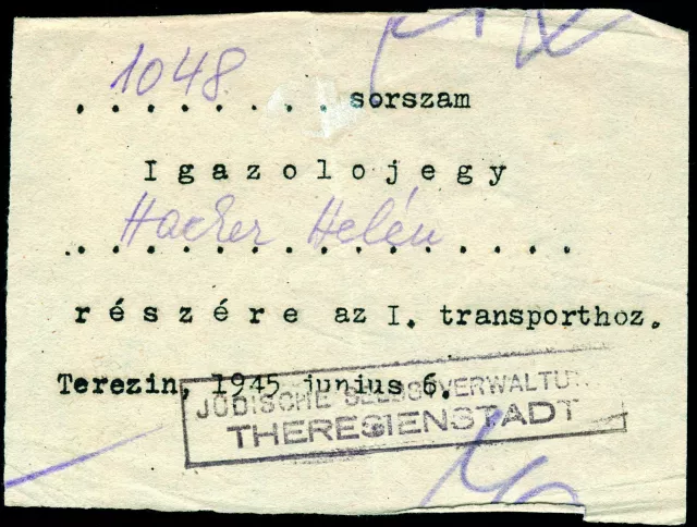 Photo of my mother`s Identity card, issued in Theresienstadt.