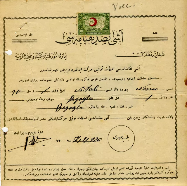 I, Nesim Alkabes, was born on July 21st, 1920 in our brick home that was 30 m. further from Galata Kulesi [A neighborhood on the European side where Jews congregated in the beginning of the 20th century] with the help of a midwife. All my other siblings were born in this house like me. My father bought this house with his savings. We lived on one flat and rented out the other 3 flats. We lived there between 1920-1928. As far as I remember, it was not a big house. The entrance opened up to a hallway, at the end of it was the bedroom of my maternal grandmother, but it was such a small room that she did not have a bed, she would make one for herself every night on the floor. We had a closet we called "Yükli" in this room. We would put items such as mattresses, comforters in there. The system of sleeping on a floorbed worked for all of us, we all slept on the floor. We warmed the house with a coke-burning stove as well as a Belgian stove called "Salamandra" where you would feed it coals from the top and remove the ashes from the bottom. The maid lit these stoves. In the bathroom of this house, there was a shower boat, we didn't have a tub, once a month, in accordance with the rules of kashrut, we would go to a hamam in Kas?mpa?a together with all the ladies of the house (because I was still young). We would go there with a horse-carriage, this was a big event for us (paseo). The men would go to "Galatasaray Hamam?" every Friday.