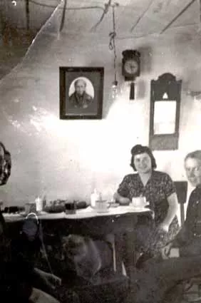 This photo was taken in the evacuation. I’m sitting at the table in the room which I had rented. My landlady is beside me. This photo was taken in Alma-Ata (today Kazakhstan) in 1943.