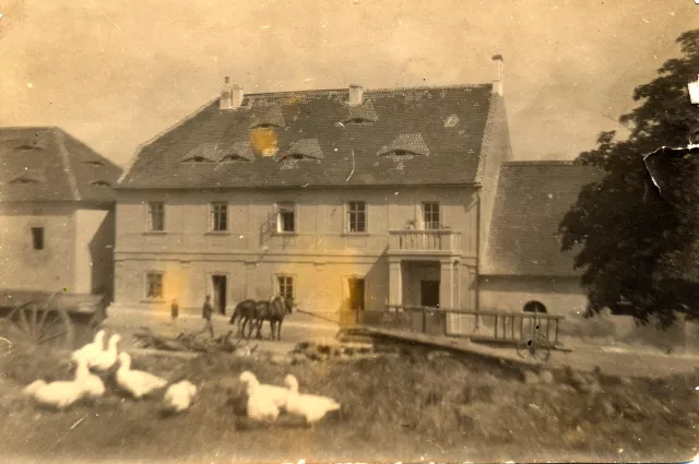 Our relatives from Doubravice were quite rich by the standards of those days, the estate all told was worth about a million crowns back then. Our relatives didn't own only the estate, but also large fields all around, where they grew wheat, rye, oats, beets and other agricultural crops. They had draught and riding horses and lots of farm animals. The farmyard included a hayloft, barn, pigsty, blacksmith's shop, dairy and also a fruit orchard that used to be called a 'plummery.' Uncle Vohryzek raised pigs. We didn't have any problems with that, because we were fully assimilated Jews.