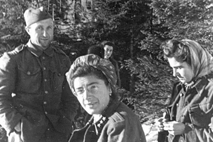 One day I saw ski tracks on the slope opposite us. After that we didn’t cook or heat. We would walk down to the village to find out what was going on. We found out that Dano Chladny, an officer of the Czechoslovak army, had begun to organize a partisan group, which later we also joined. I don’t know why, but my cousin Vojtech Kürti signed up only the men as members. Maybe he didn’t like women. When he was three years old, he was burned. His entire body was covered in scars. On one side he had someone else’s ear sewn on in a plastic surgery operation, and he had only three fingers on his hand. He survived thanks to his father being a doctor, and that he was suspended in an oil bath.