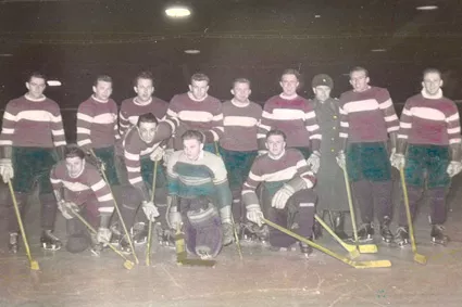 This is a photograph of our army hockey team, Dukla Presov, in 1957.